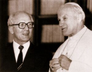 De officiële audiëntie van de DDR-partij en staatshoofd ter gelegenheid van zijn bezoek aan Italië in 1985 met paus Johannes Paulus II in het Vaticaan zorgde voor een aanzienlijke waardering voor Erich Honecker en de DDR. Erich Honecker nodigde de paus uit om de DDR te bezoeken.