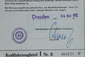 Volgens het kentekenbewijs werd de Belgische speedster op 24 maart 1972 geregistreerd op naam van een ingenieur uit de DDR. Zijn erfgename verkocht hem na 1987 aan de Belg.